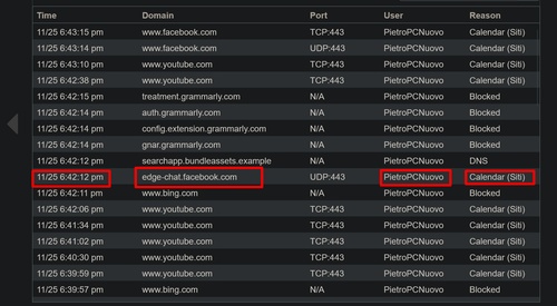 I have the “facebook.com” address blocked in my calendar until 7 pm, and at the same time, I have the “edge-chat.facebook.com” address whitelisted.